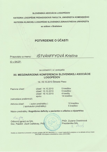 E-mail: logoped@dckvietok.com2010 - ukončené vysokoškolské štúdium na Univerzite Komenského v Bratislave odbor Logopédia s titulom Mgr.